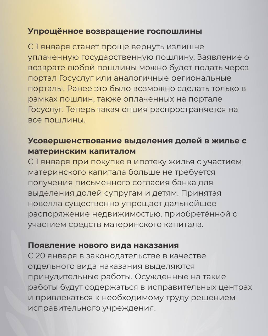 Изменения в законодательстве, вступающие в силу в январе 2026 года